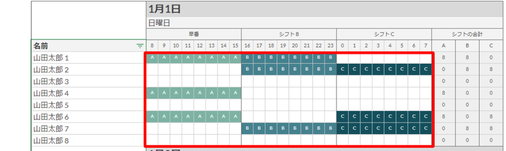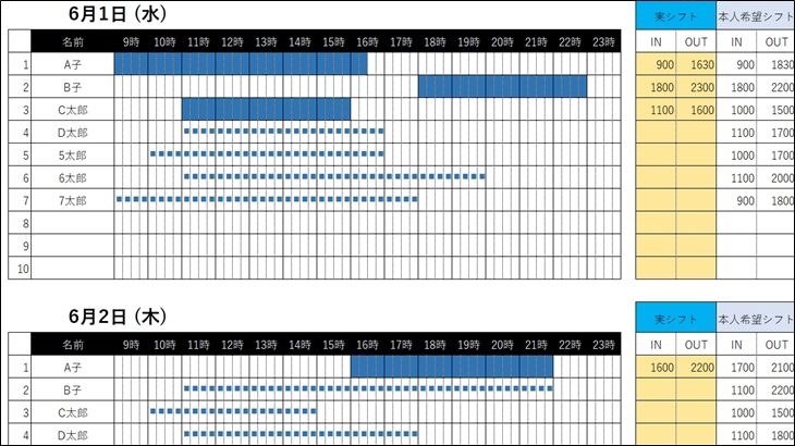 直感的操作でシフト作成ができるガントチャート式のシフト表テンプレートEXCEL勤怠テンプレート。