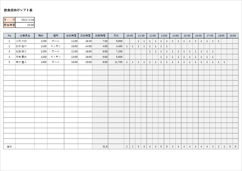 無料ダウンロード 飲食業向け シフト表テンプレートの決定版。