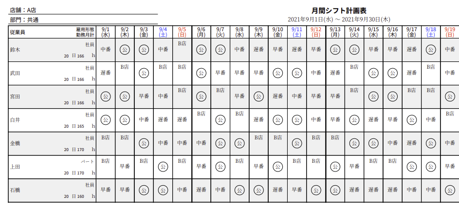 無料41種 シフト表テンプレート Excel・PDF・スプシ 業種別テンプレートあり無料・登録不要ビズ研。