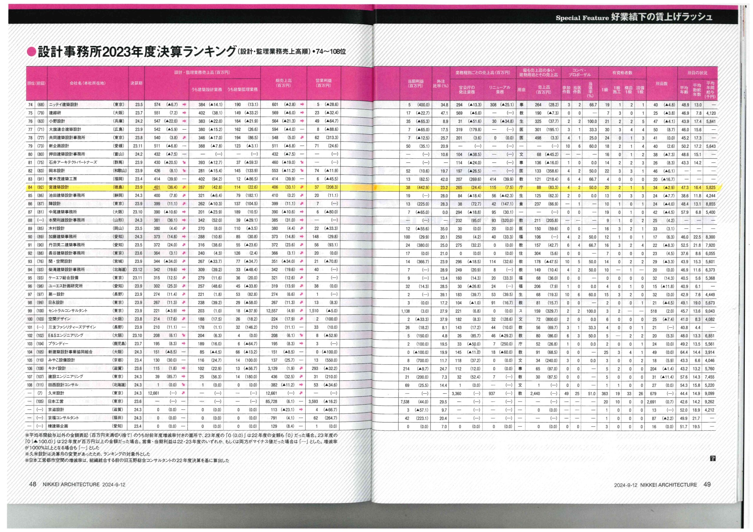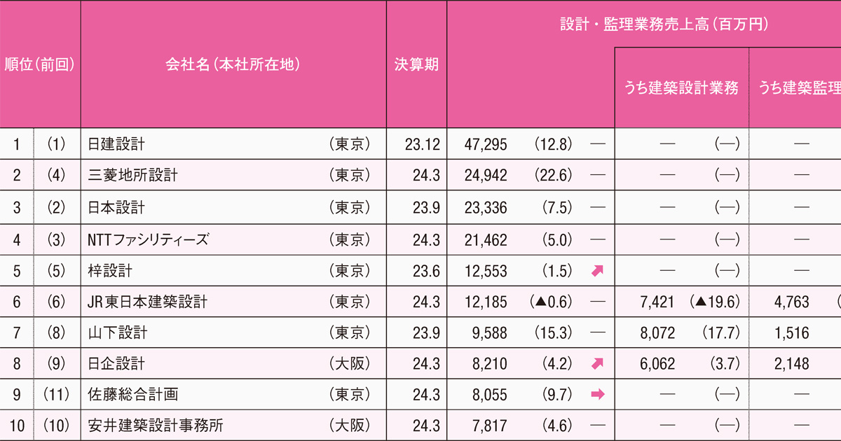 設計事務所の2024年度決算ランキング、113社のデータ一挙公開日経クロステック xTECH。