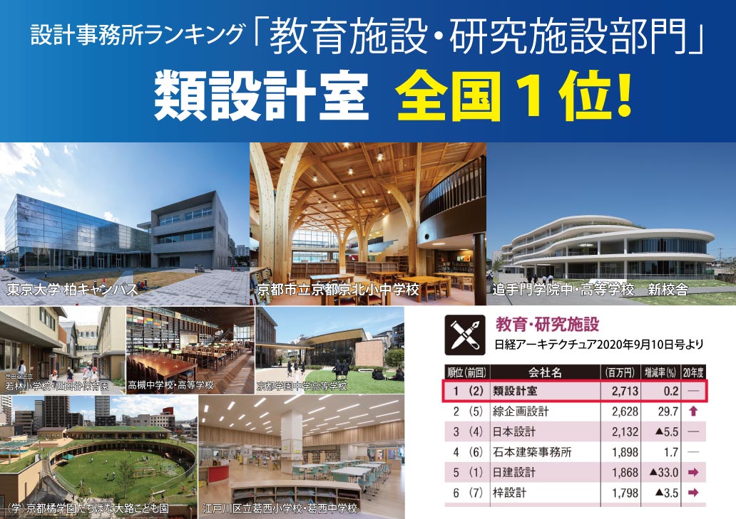 設計事務所ランキング「教育施設・研究施設部門」_全国3位!〜教育施設なら類設計室!〜 - 株式会社 類設計室。