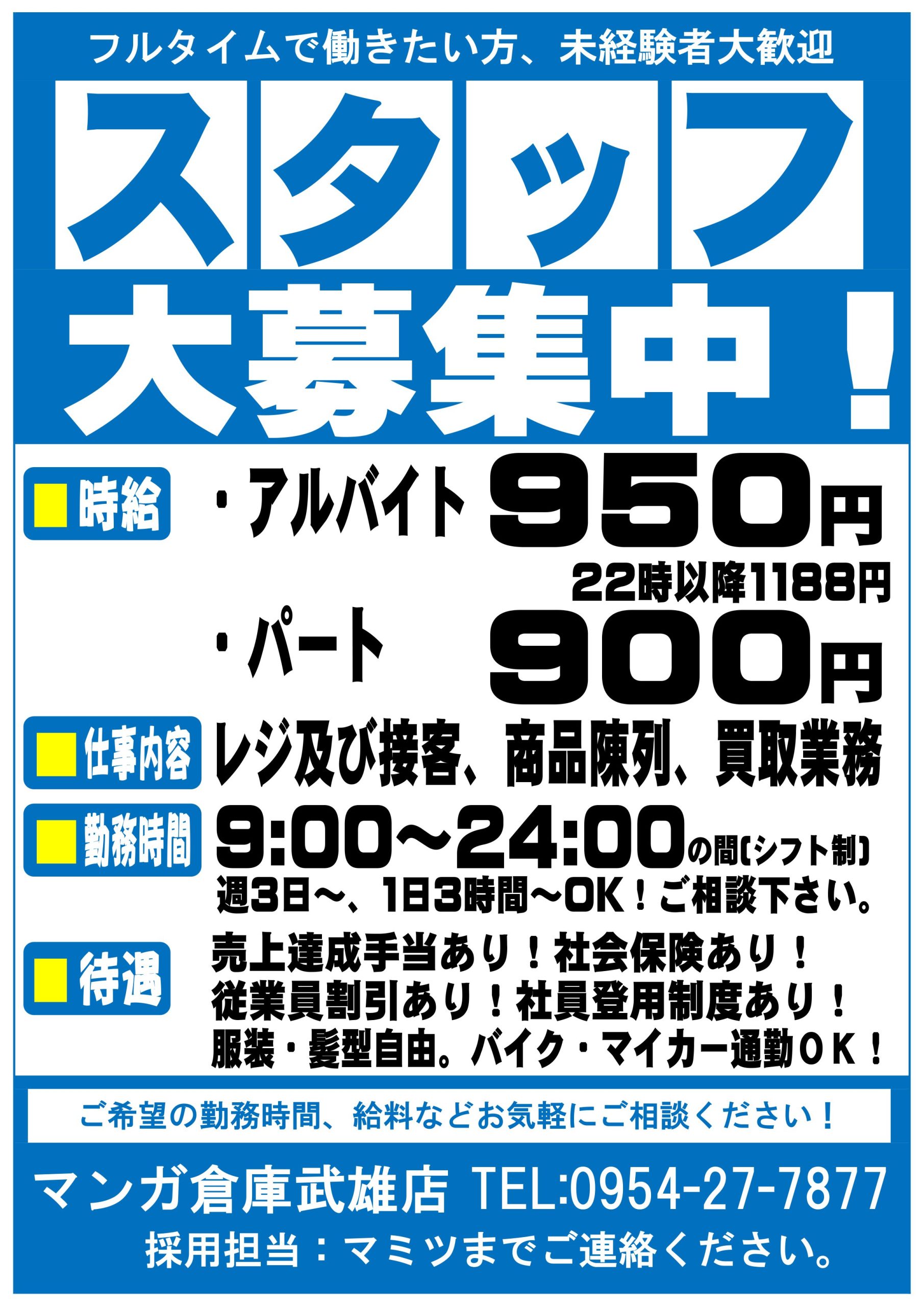 アルバイト・パートスタッフ募集!!武雄市接客業マンガ倉庫リサイクルショップ求人急募マンガ倉庫 武雄店ホームページ。