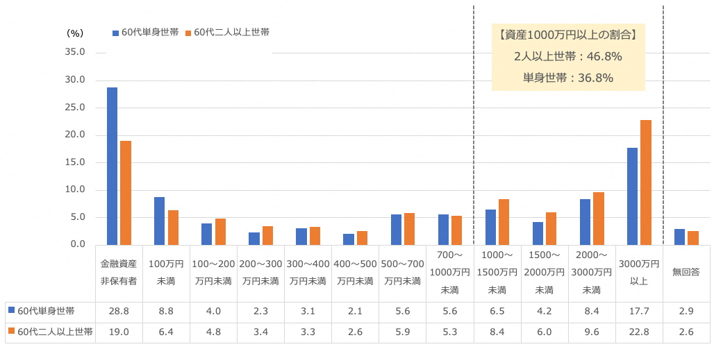 60代で資産1000万円以上の割合は?資産状況を分布で確認東証マネ部。