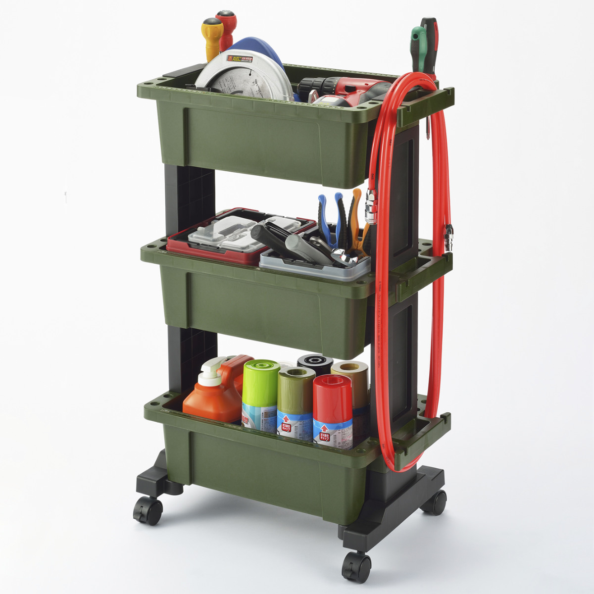 ツールワゴン 3段 ツルカ ガレージ 工具収納ボックス 作業場用 ナイフホルダー 工具展示スタンド。