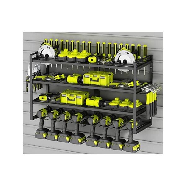 Amazonガレージ電動工具収納オーガナイザー 4層壁掛けドリルホルダー ワークショップ収納ラック&充電ステーション 高耐久金属製プレミアムガレージツールシェルフスチールラック本体 オンライン通販。