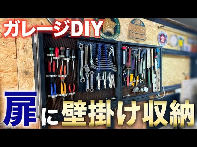 DIY 壁面収納!ガレージの壁に工具の収納棚を作成する!! バイクガレージ- YouTube。