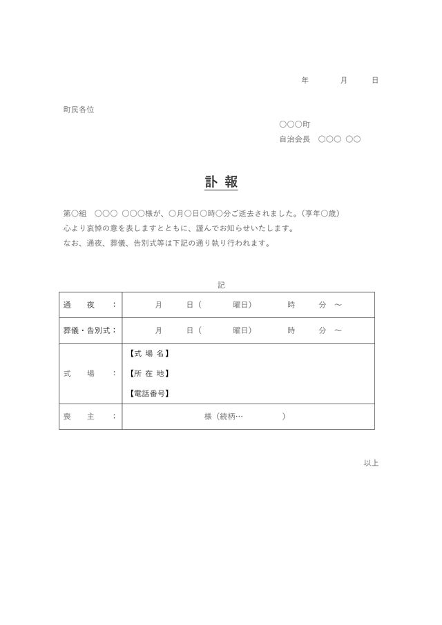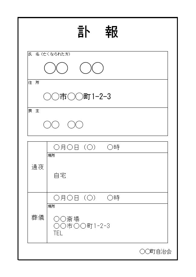 訃報のお知らせ 例文入りで作成 町内会のテンプレート 近所への回覧板 WordやExcelを無料ダウンロード王の嗜み。