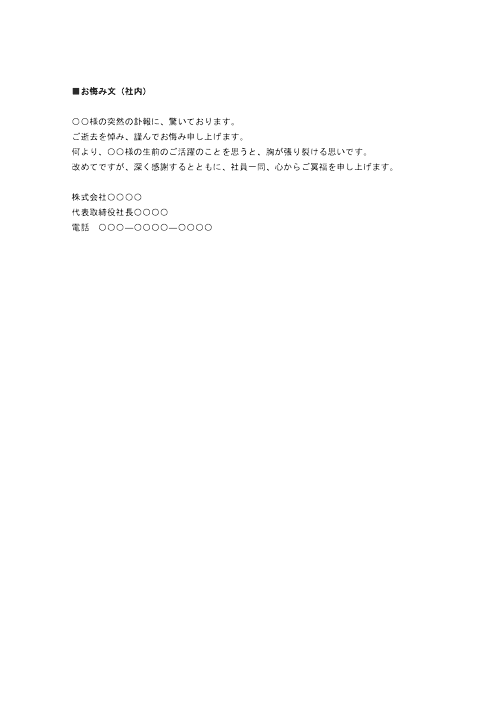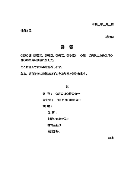 訃報 社員の家族 の書式テンプレート Word・ワードテンプレート・フリーBiz。