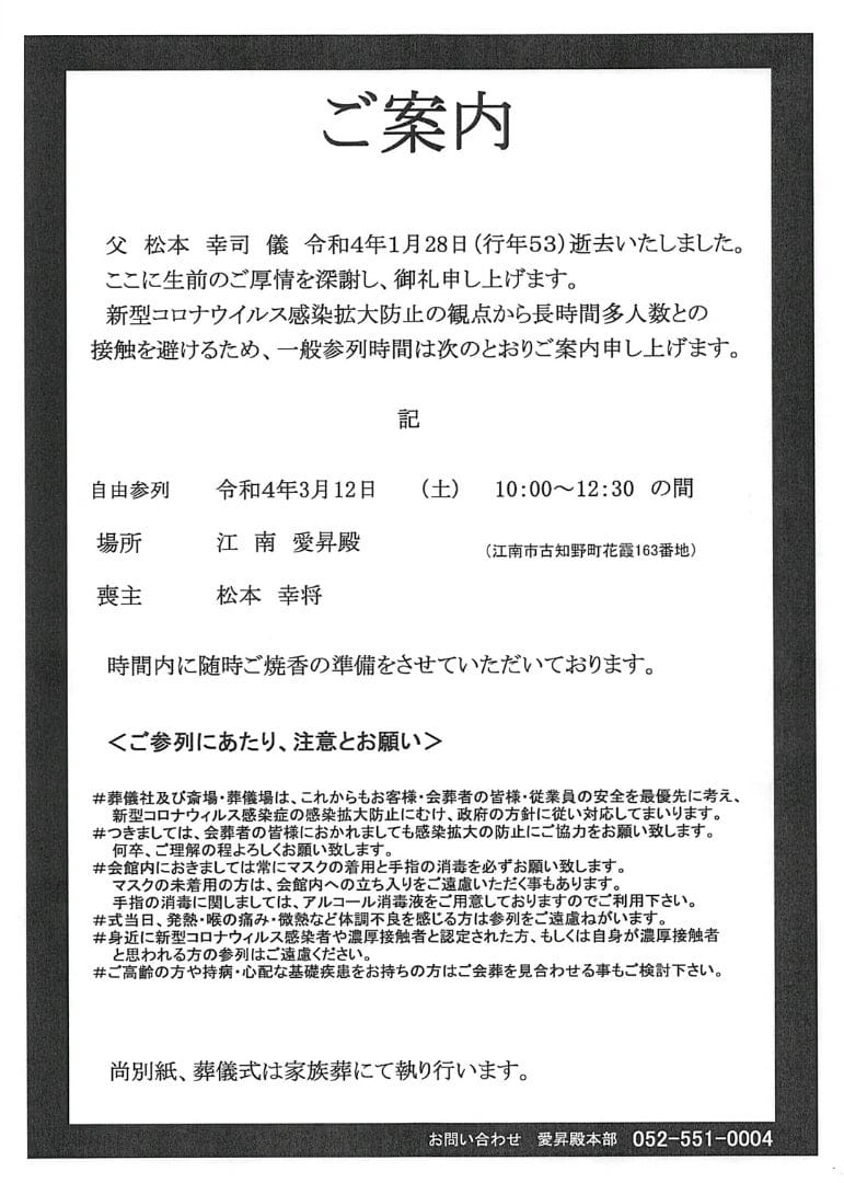 訃報のお知らせをするときの例文集タイミングや書き方の注意点も解説 - 葬儀・葬式・家族葬ならメモリード東京・埼玉・群馬で安心のお葬式。