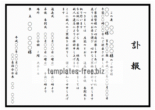 訃報案内状テンプレート - Excelフリーソフト館 - 無料テンプレート集。