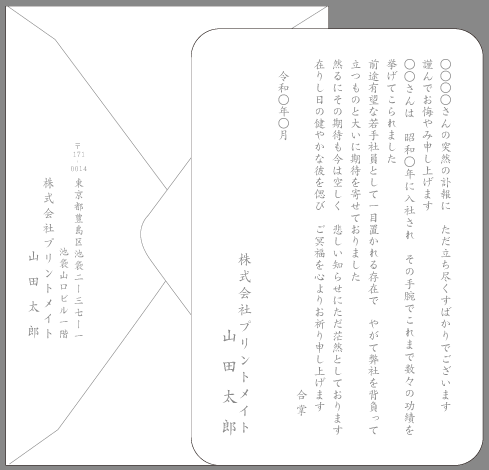 案内状 社葬・偲ぶ会 文例とポイント即日印刷プリントメイト。