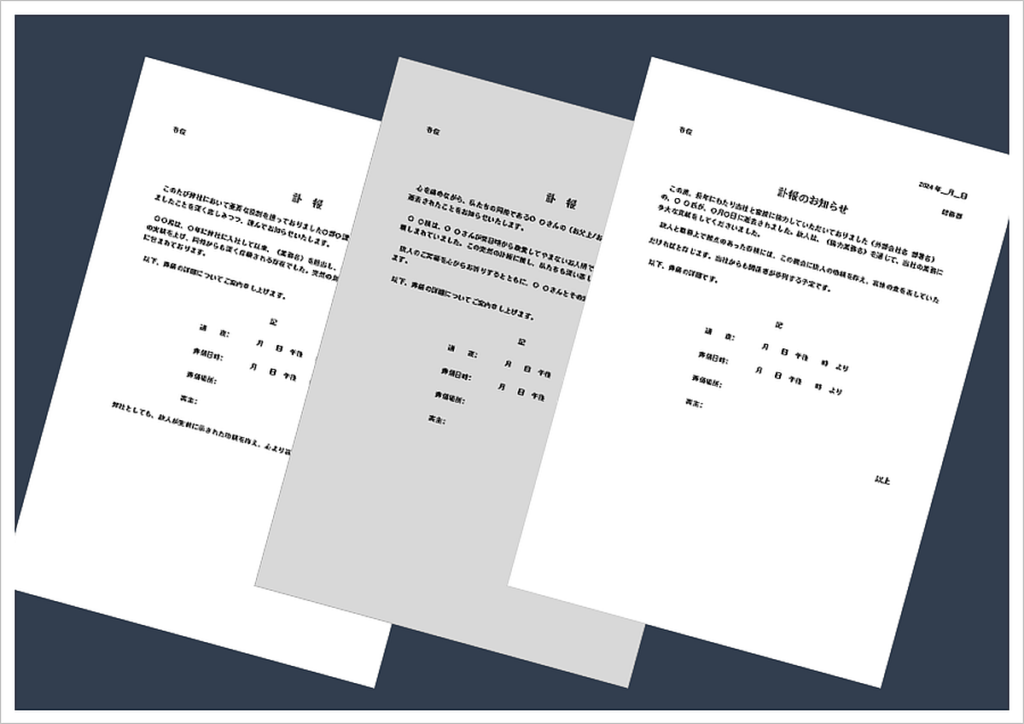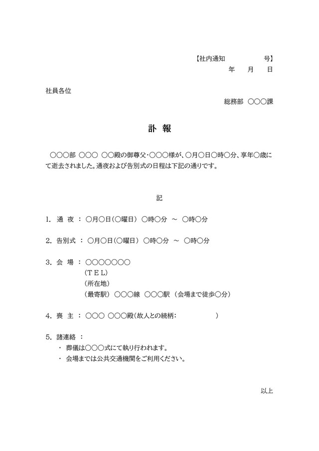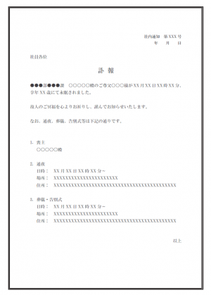 社内通知・訃報のテンプレート・Word無料のビジネス書式テンプレート。