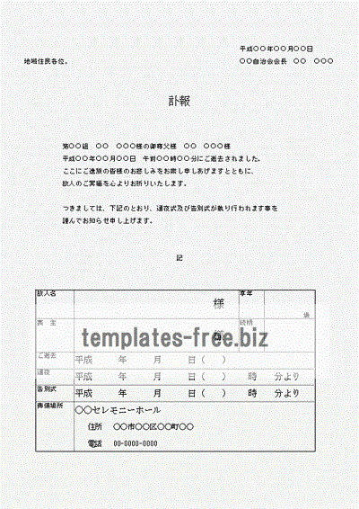 自治会内訃報の無料テンプレート素材 ワード無料テンプレート Mac・Windows 『ひな形ジャーナル』。