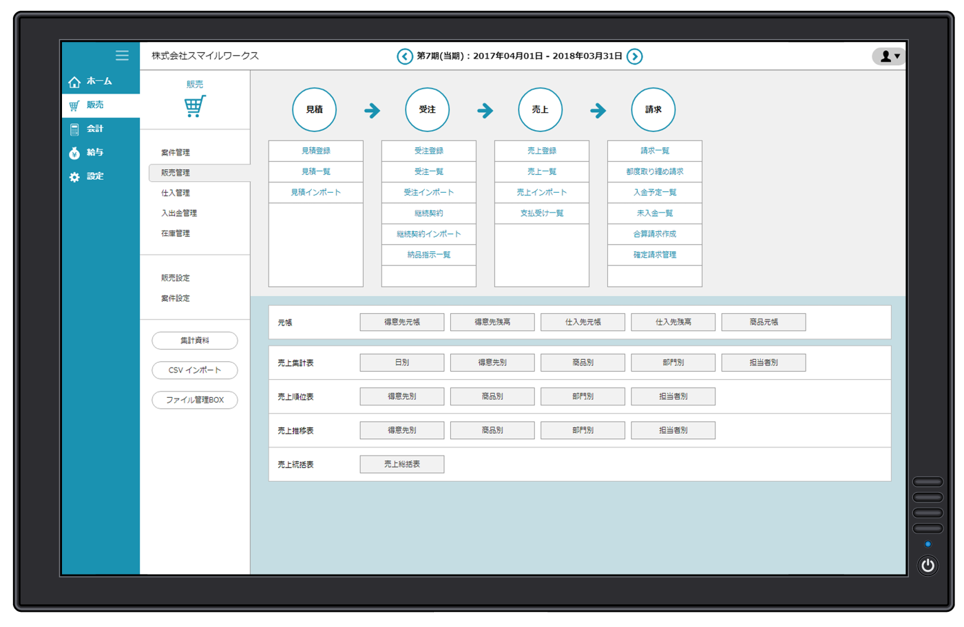 クラウドERPシステム スマイルワークスの販売管理「販売ワークス」。