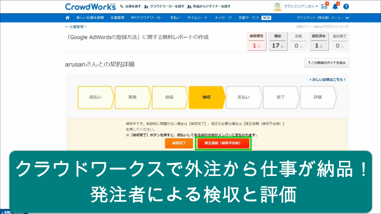 クラウドワークスで外注から仕事が納品!発注者による検収と評価。