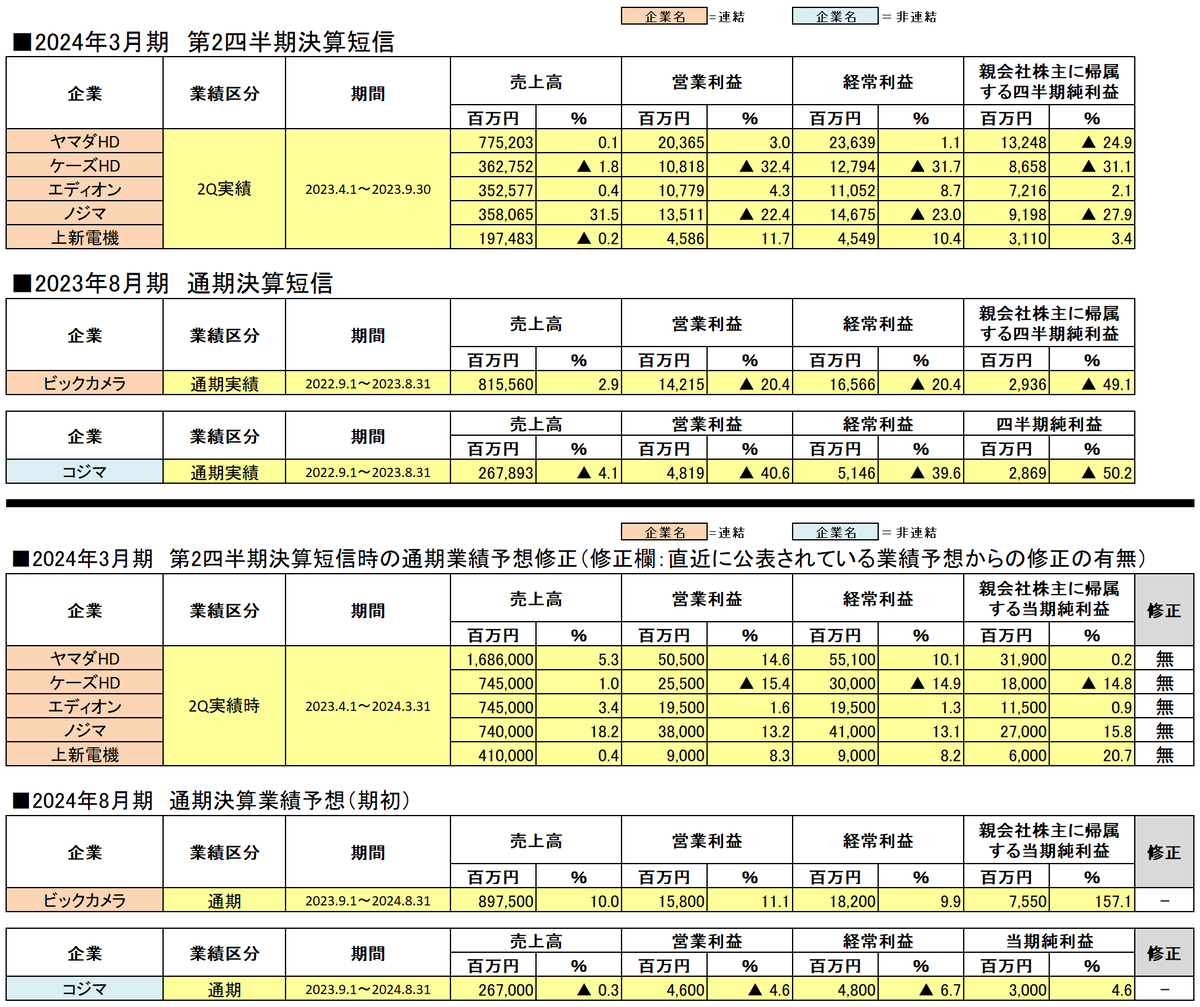 2024年3月期各家電量販店決算短信 - 家電量販店・家電メーカーの営業、マーケティング研修の専門コンサルタント。