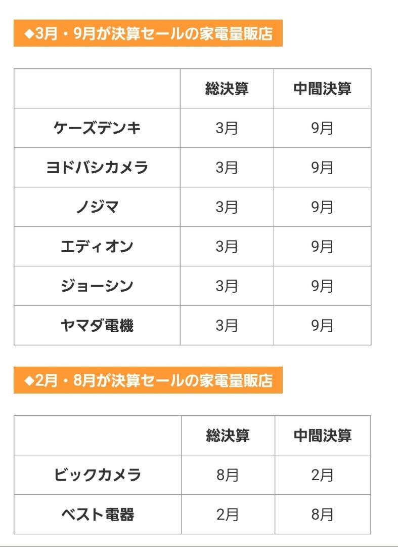 2025年版 家電量販店の決算セール時期はいつ?ヨドバシ・ヤマダ・ビックカメラなど。