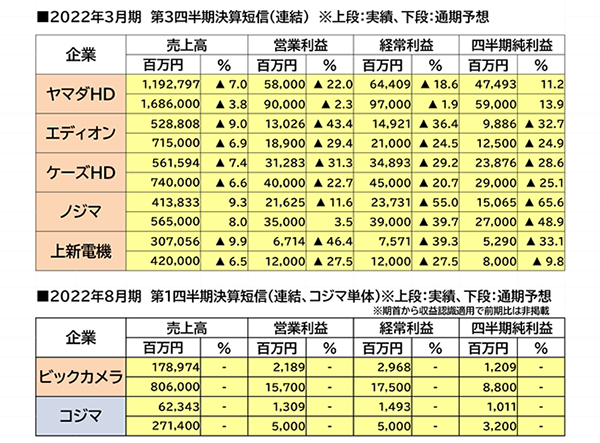 決算:家電量販4~9月、巣ごもり一巡で4社減益 値上げも響く - 日本経済新聞。