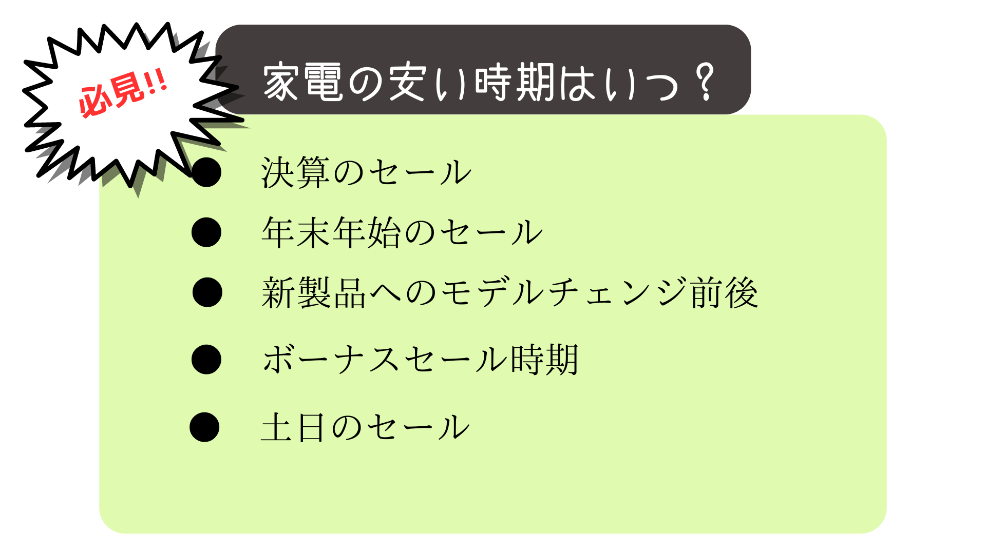 2025年最新 家電の安い時期はいつ?家電量販店「セールの種類」一覧。