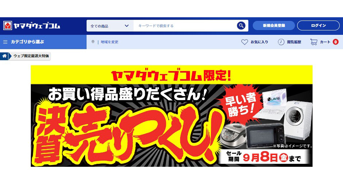 ヤマダデンキ、ウェブ限定で9月8日まで「決算売りつくし! 」セールマイナビニュース。