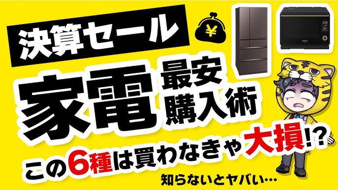 知って得する家電製品を安く買える時期 家電を安く買える時期には、 「家電別に安い時期」 と「セールの時期」があります。新商品にこだわらないのであれば、 モデルチェンジの時期を狙うと 旧型・型落ちの電化製品が値下げ価格で販売されています。家電別モデル。