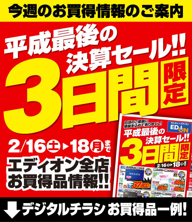 平成最後の決算セール 3日間限定特価品 家電と暮らしのEDIONネットショップ -公式通販サイト。