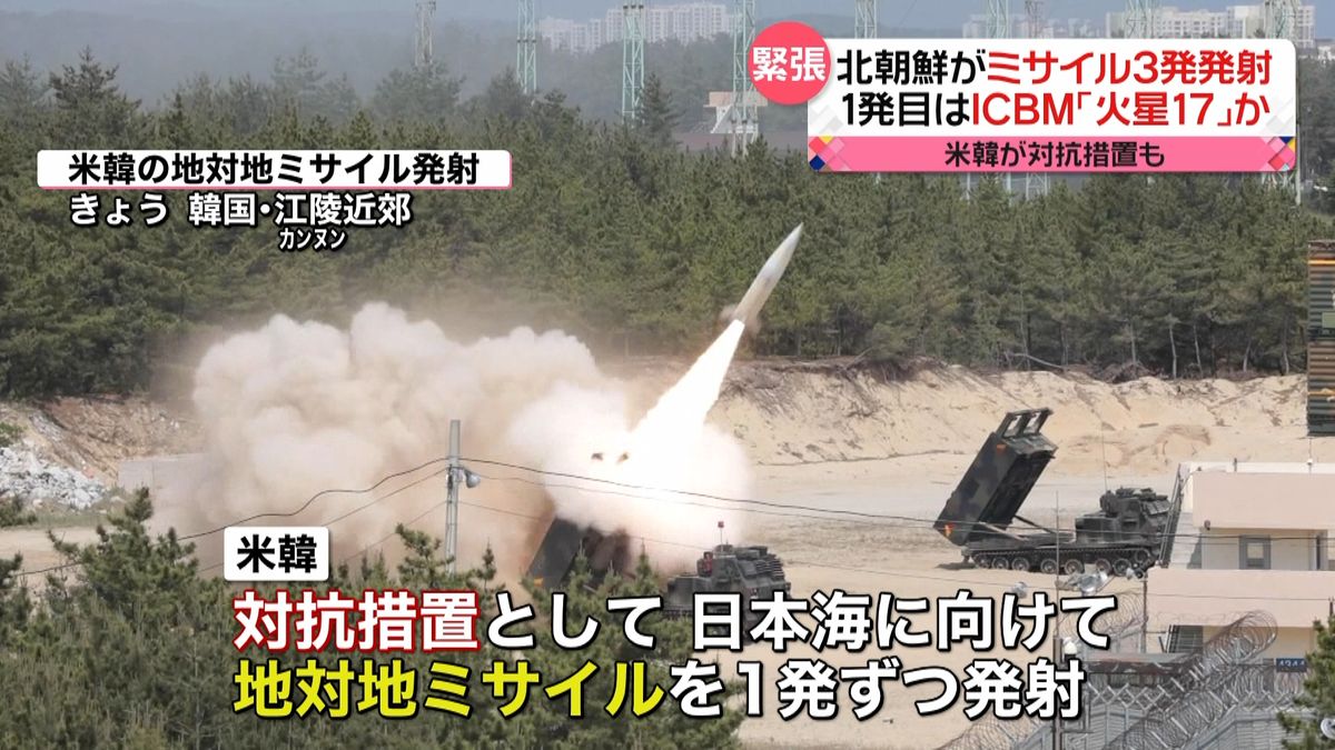 北朝鮮がミサイル3発発射 1発目はICBM「火星17」か 2022年5月25日掲載 日テレNEWS NNN。