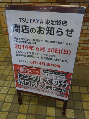 閉店 TSUTAYA 東池袋店 東京都豊島区- CDレコード販売・レンタル店 開店閉店メモ。