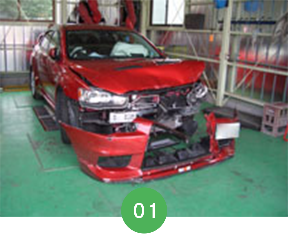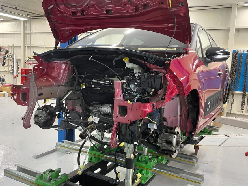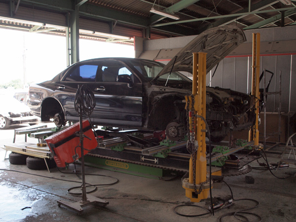 事故修理の流れとフレーム修正機による修正作業 – 神戸ボディショップ 自動車修理、板金塗装の専門店。