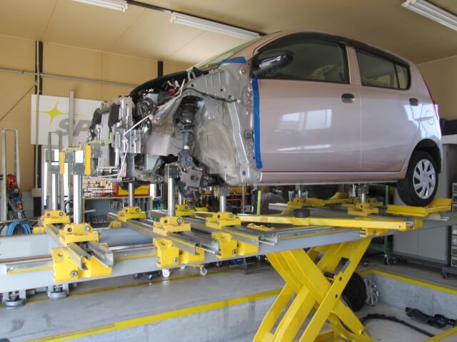 スパネージ製ジグ式フレーム修正機 3D立体計測 でプリウスa修正 – 事故車修理板金塗装専門店 ボディピットヤマモト。