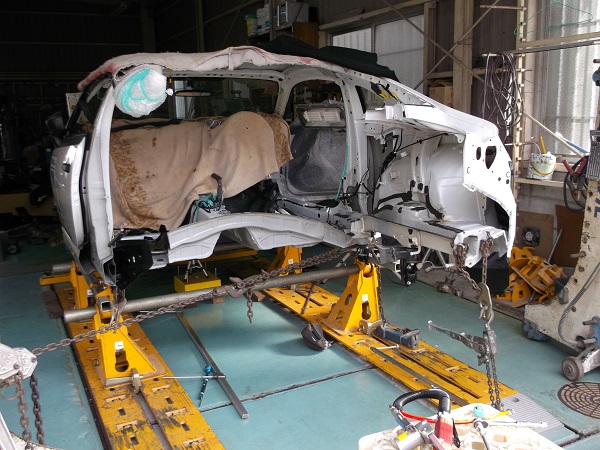 大破事故によるフレーム修正工程浜松市浜名区の自動車修理・板金屋 桜井オートショップ。