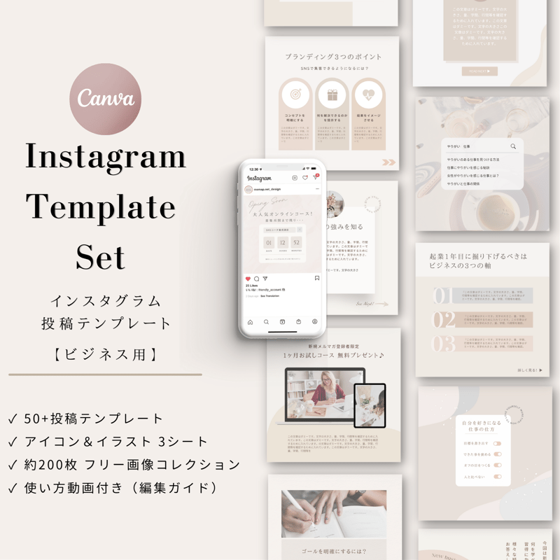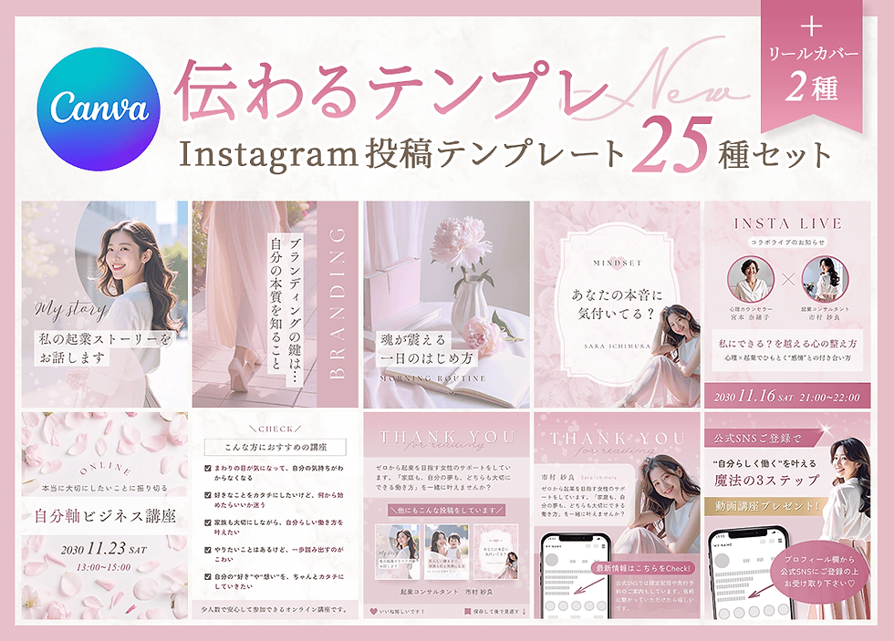 Canvaで編集できる「伝わるインスタ投稿テンプレート」25点セット+リールカバーテンプレート2点起業女性向け。