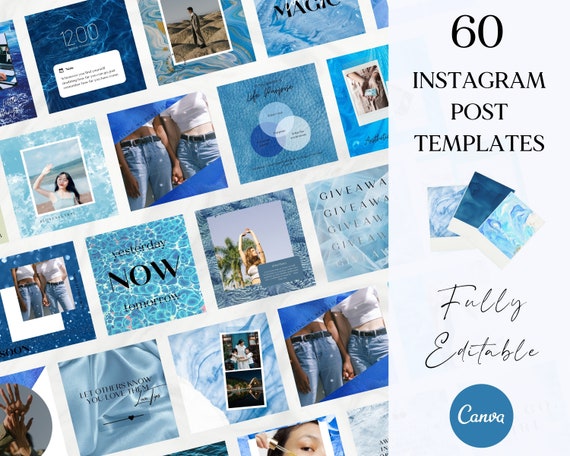 編集可能な Instagram 投稿テンプレート、青い Instagram テンプレート、Canva 用 Instagram 投稿テンプレート、大理石のInstagram フィード、Instagram 用引用 - Etsy 日本。