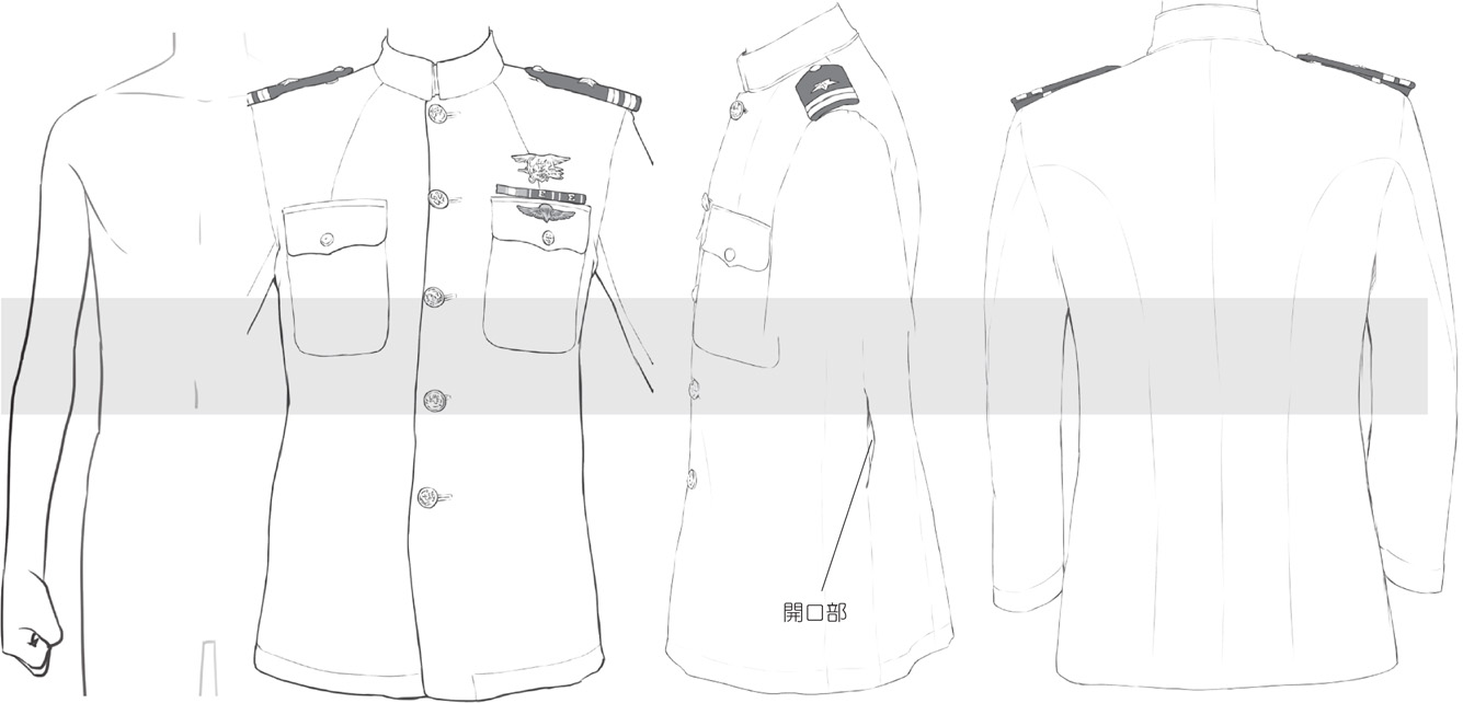 やつき on X: "フォロワーによりだいぶ白軍服 というより学生服なのか? の構造解像度上がった 襟まわりまだ若干あやしいけど肩章ないでよさそうだから結構謎構造だなhttps:t.co wP1EBNrFfY"X。