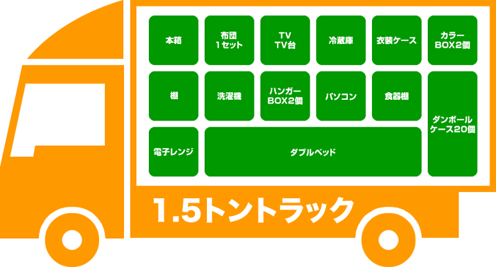 引越車両紹介・積載例フレッシュマン単身引越しサービス。