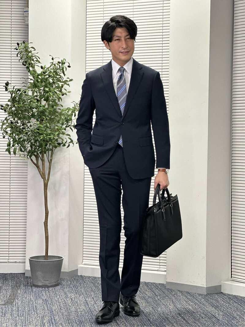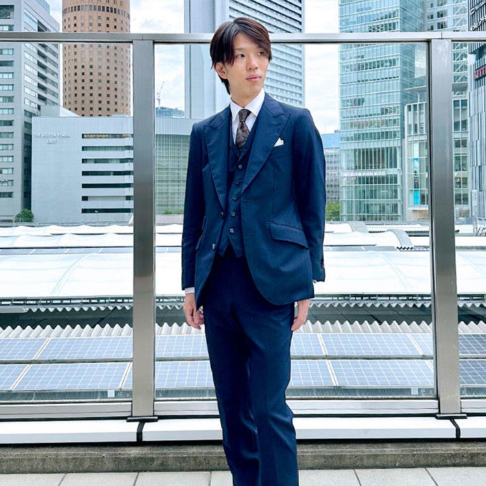 新卒の方にもピッタリ明るめネイビースーツ-新宿南口店スーツコレクション-オーダースーツSADA。