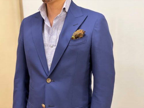 ライトネイビースーツオーダースーツは完全国内縫製のHANABISHI ハナビシ。