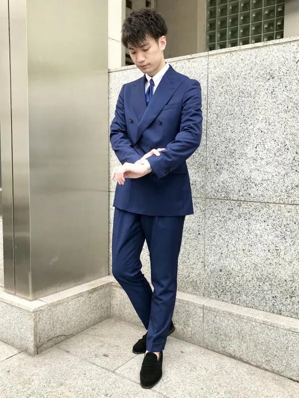 STAFFコーデ 華やかなライトネイビースーツスタイルオーダースーツのFABRIC TOKYO。