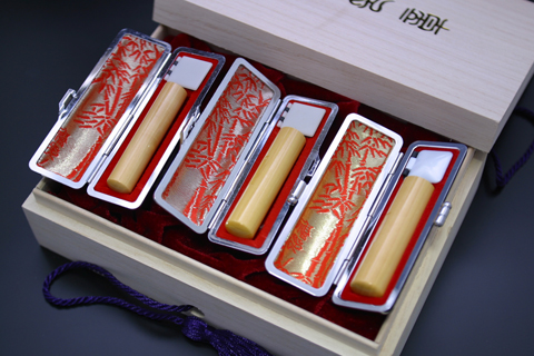 開運社本店の豪華印鑑セット,象牙印鑑,黒水牛印鑑,白水牛印鑑,オノオレカンバ印鑑など。
