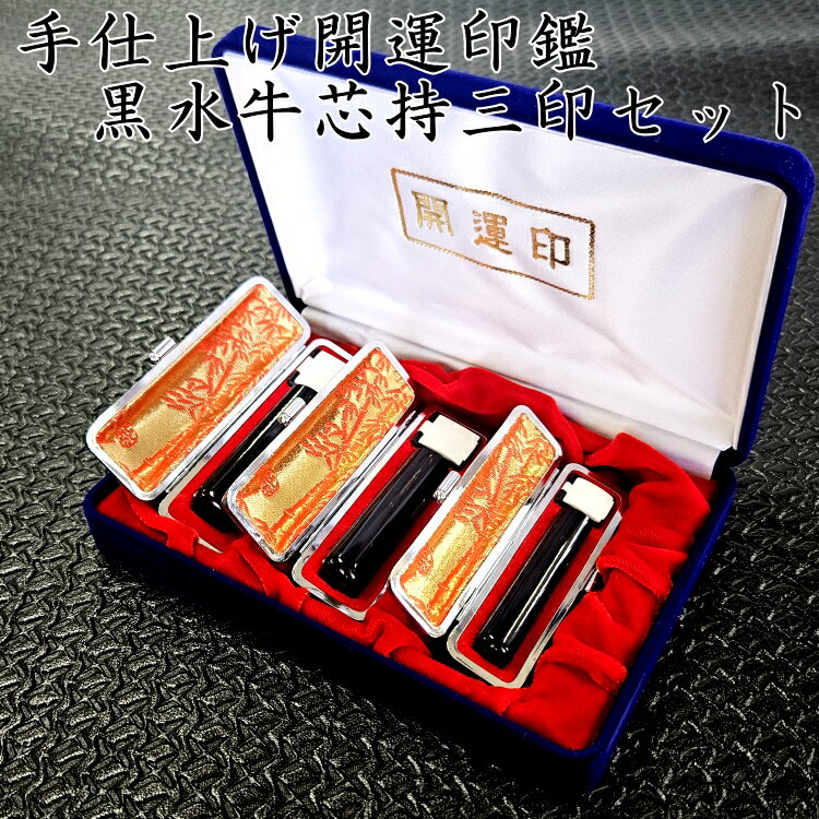 手仕上げ開運印鑑 黒水牛芯持三印セット 高級印章セット黒水牛。