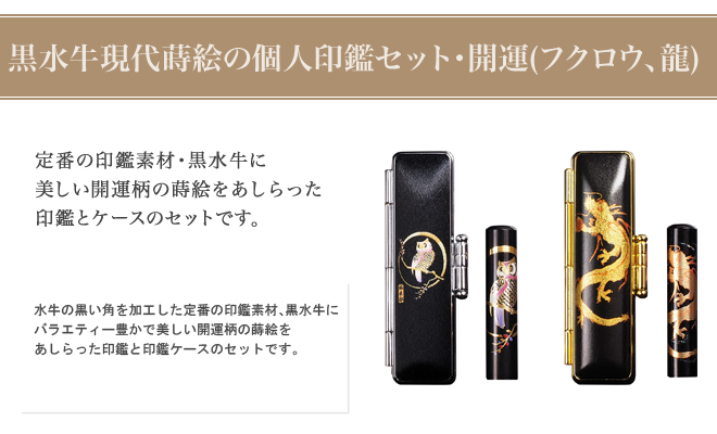 印鑑 実印 15mm 印鑑セット 黒水牛 開運 現代蒔絵 鳳凰 印鑑ケース ケース付き 牛革 型押し シャイニングクロコ 旧字 ローマ字 カタカナ外国人 はんこ 作成。
