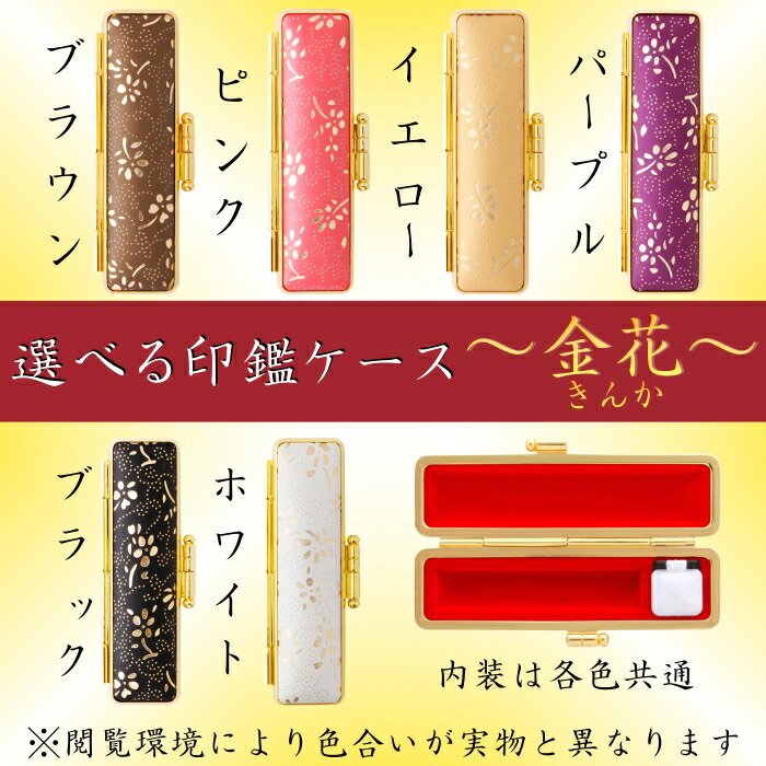 カラー豊富 花柄 印鑑ケース 金花 黒水牛芯持手仕上げ開運印鑑。