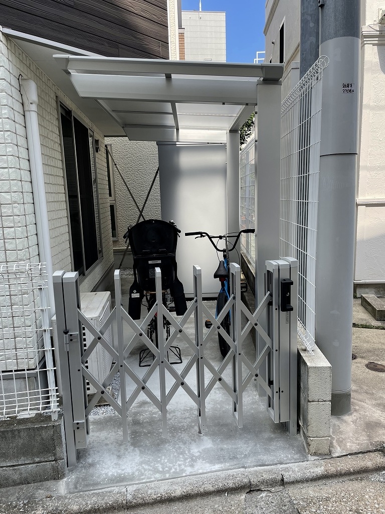 お庭のデッドスペースを屋根付きの駐輪スペースへ有効活用@目黒区エクステリア&ガーデン プラッツ。