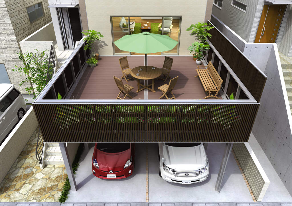 カーポートの上が広々テラス空間に!敷地を有効活用して叶えるプライベートガーデン - GardenJournalGardenjournalガーデンジャーナル。