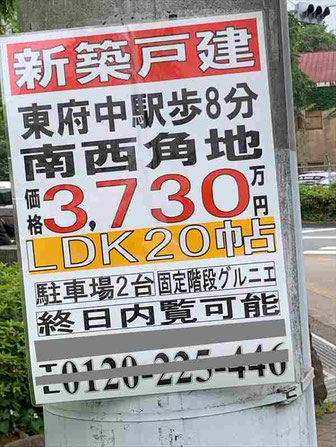 呆れる違法捨て看板の実態 府中市の不動産屋さん府中市不動産売却・不動産購入 大成功!わいわいアットホーム。