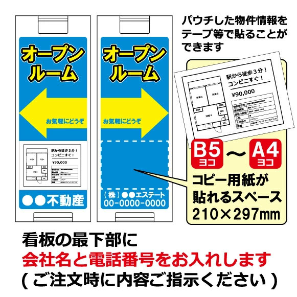 不動産業者様のための物件案内看板 A看板 スタンドプレート SP-908 ホワイト 両面印刷完成品オープンルーム・入居者募集・他デザインを選び文字指定でオーダー 受注生産:発送まで7日~14日程度 F030自社在庫品C。