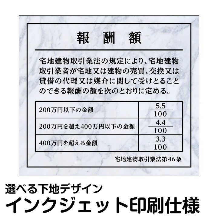 楽天市場 業者票 許可票不動産 「 報酬額の定め標識 」AG板 文字入れ加工済みプレート : 看板ショップ。