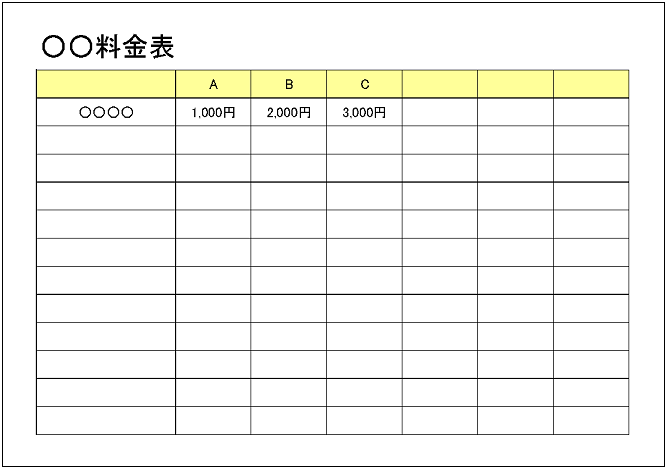 料金表テンプレート - Excelフリーソフト館 - 無料テンプレート集。
