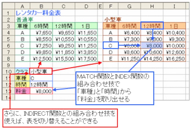 Excelで料金表から料金を取得する MATCH関数・INDEX関数- 西沢直木のIT講座。