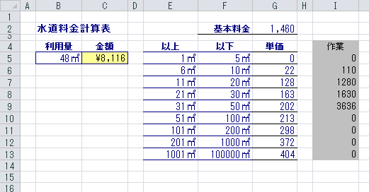 Excel一般機能:水道料金などの段階的に変動する料金計算。